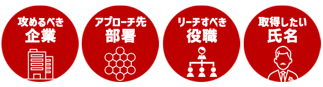また自社サービスにおける国内マーケットの中で、ターゲットとなる社数を把握し、優先して攻めるべき規模、期間、目標を定め、効率的・効果的にリード基盤を構築いたします。